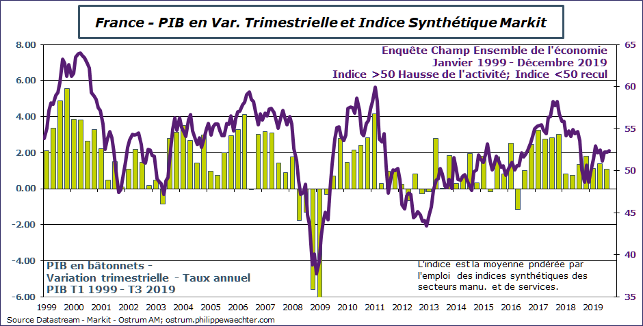 L’enquête Markit pour la France ne suggère pas en décembre d’inflexion que l’on puisse relier au mouvement social. La capacité de l’économie à s’adapter est plus forte qu’on ne l’imagine