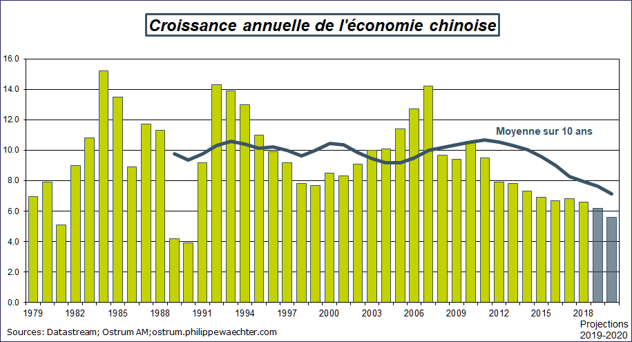 Le ralentissement inéluctable de la croissance chinoise pourrait être une menace pour le pouvoir politique chinois. Hong Kong reste une source d’incertitude sur la volonté politique de Pékin.